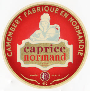 Antique, Unused, French Caprice Normand Camembert Cheese Label, Normandy