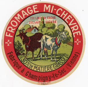 Antique, Unused, French Fromage Mi-Chevre Cheese Label, Goat Cheese
