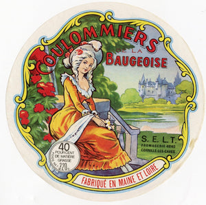Antique, Unused, French Coulommiers de La Baugeoise Cheese Label, Georgian Woman