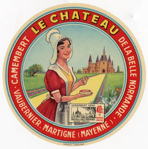 Antique, Unused, French Le Chateau Camembert Cheese Label, Milk Maid