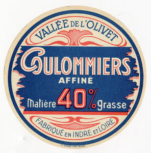Antique, Unused, French Vallee De L'Olivet Coulommiers Cheese Label, Loire