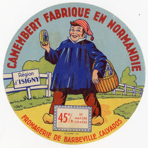 Antique, Unused, French Normandie Camembert Cheese Label, Peasant Man
