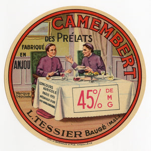 Antique, Unused, French Camembert des Prelats Cheese Label, Bishops, Bauge