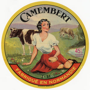 Antique, Unused, French Camembert Cheese Label, Beautiful Woman, Normandy