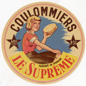 Antique, Unused, French Le Supreme Coulommiers Cheese Label, Touraine