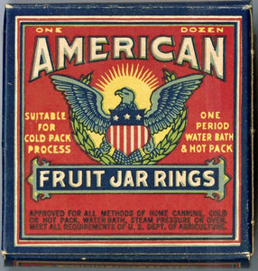 Antique American One Dozen Fruit Jar Canning Rings in Original Box, Eagle