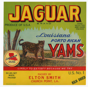 Vintage, Unused JAGUAR Yams Vegetable Crate Label || Church Point, Louisiana