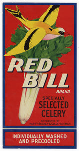 Vintage, Unused RED BILL Celery Vegetable Crate Label || Detroit, Michigan