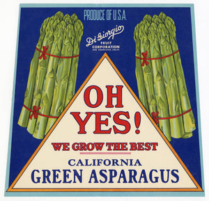 Vintage, Unused OH YES! Asparagus Vegetable Crate Label || San Francisco, Ca.