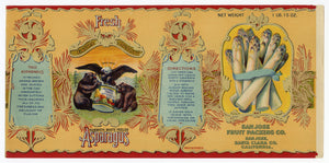Vintage, Unused MAMMOTH White Canned Asparagus Vegetable Label || San Jose, Ca.