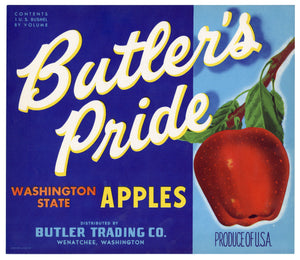 Vintage, Unused BUTLER'S PRIDE Apple Fruit Crate Label || Wenatchee, Washington