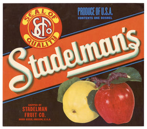 Vintage, Unused STADELMAN'S Apple Fruit Crate Label || Hood River, Oregon