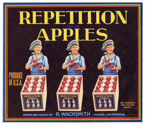Vintage, Unused REPETITION APPLES Fruit Crate Label || Yakima, Washington