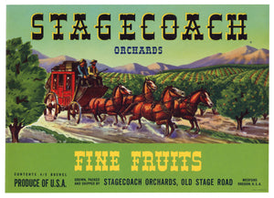 Vintage, Unused STAGECOACH Fine Fruits Apple Crate Label || Medford, Oregon
