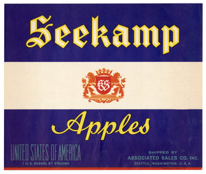 Vintage, Unused SEEKAMP Apple Fruit Crate Label || Seattle, Washington