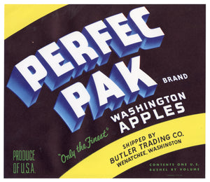 Vintage, Unused PERFEC PAK Brand Apple Fruit Crate Label || Wenatchee, Washington