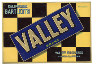 Vintage, Unused VALLEY Brand Pear Fruit Crate Label || Suisun, California