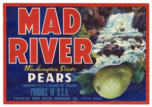 Vintage, Unused MAD RIVER Brand Pear Fruit Crate Label || Entiat, Washington
