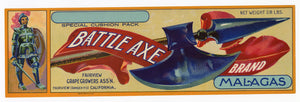 Vintage, Unused BATTLE AXE Grape, Fruit Crate Label || Fairview, California
