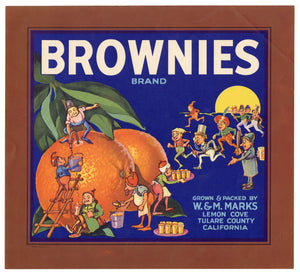 Vintage, Unused BROWNIES Brand Orange Fruit Crate Label || Lemon Cove, Tulare, Ca.