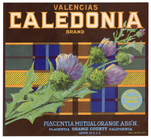 Vintage, Unused CALEDONIA Orange Fruit Crate Label || Placentia, Ca.