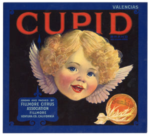 Vintage, Unused CUPID Brand Orange Fruit Crate Label, Valentines || Fillmore, Ventura, Ca.