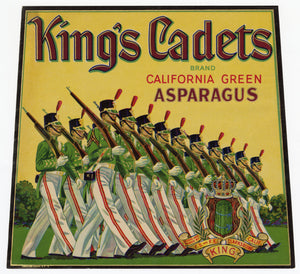 Vintage, Unused KING'S CADETS Asparagus Vegetable Crate Label || Clarksburg, Ca.