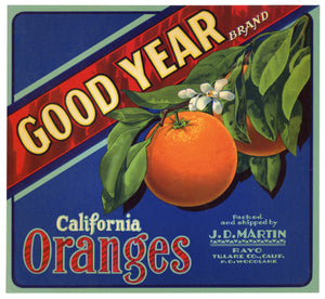 Vintage, Unused GOOD YEAR Orange Fruit Crate Label || Rayo, Tulare Co., Ca.