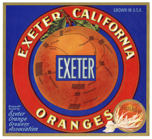 Vintage, Unused EXETER Orange Fruit Crate Label || Exeter, Ca.