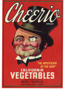 Vintage, Unused CHEERIO Vegetable Crate Label, Man with Monocle || Salinas, Ca.
