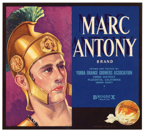 Vintage, Unused MARC ANTONY Citrus Crate Label || Yorba, Placentia, Ca.
