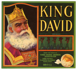 Vintage, Unused KING DAVID Orange, Fruit Crate Label || Yorba, Placentia, Ca.