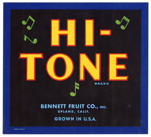 Vintage, Unused HI-TONE Citrus Fruit Crate Label || Upland, California