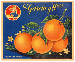 Vintage, Unused S. GARCIA Orange, Fruit Crate Label || Oliva, Spain