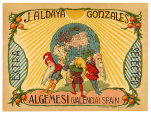 Vintage, Unused, Spanish J. ALDAYA GONZALES Orange Fruit Crate Label, Gnomes || Algemesi, Spain