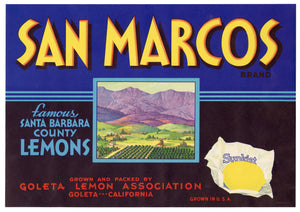 Vintage, Unused SAN MARCOS Lemon Fruit Crate Label || Goleta, Ca.