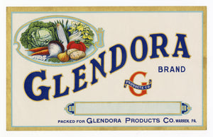 Vintage, Unused GLEDORA Brand Vegetable Crate Label || Warren, Pa.
