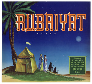 Vintage, Unused RUBAIYAT Brand Citrus Fruit Crate Label || Redlands, Ca.