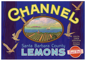 Vintage, Unused CHANNEL Lemon Fruit Crate Label || Santa Barbara, Goleta, Ca.