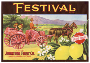 Vintage, Unused FESTIVAL Citrus Crate Label, Rose Parade || Santa Barbara, Ca.