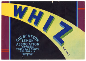 Vintage, Unused WHIZ Brand Lemon Fruit Crate Label || Saticoy, Ca.