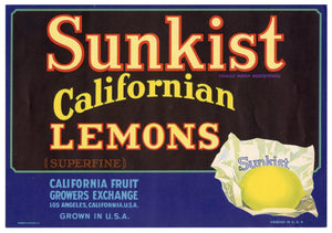 Vintage, Unused SUNKIST Lemon Fruit Crate Label || Los Angeles, Ca.
