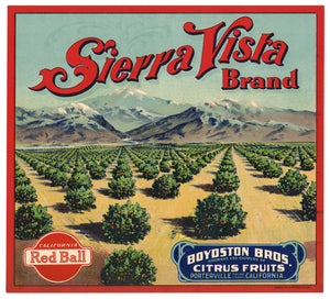 Vintage, Unused SIERRA VISTA Brand Citrus Fruit Label || Porterville, Tulare, Ca.