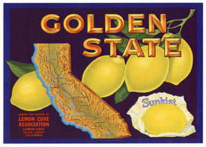 Vintage, Unused GOLDEN STATE Lemon Fruit Crate Label || Lemon Cove, Tulare Ca.