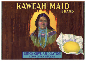 Vintage, Unused KAWEAH MAID Lemon Fruit Label || Lemon Cove, Ca.