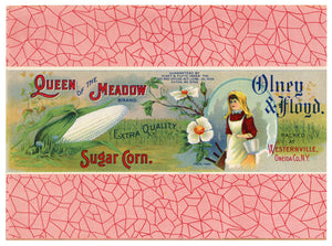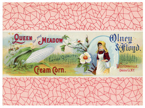 Antique, Unused Queen of the Meadow Creamed Corn Label B, Oneida