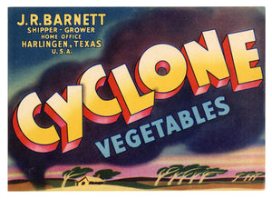 Vintage, Unused CYCLONE Vegetable Crate Label || Harlingen, Texas