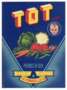 Vintage, Unused TOT Brand Vegetable Crate Label || Watsonville, Ca.