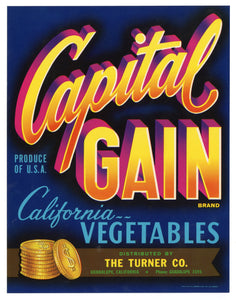 Vintage, Unused CAPITAL GAIN Vegetable Crate Label || Guadalupe, Ca.