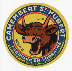 Antique, Unused,French Camembert St. Hubert Cheese Label, Laughing Cow